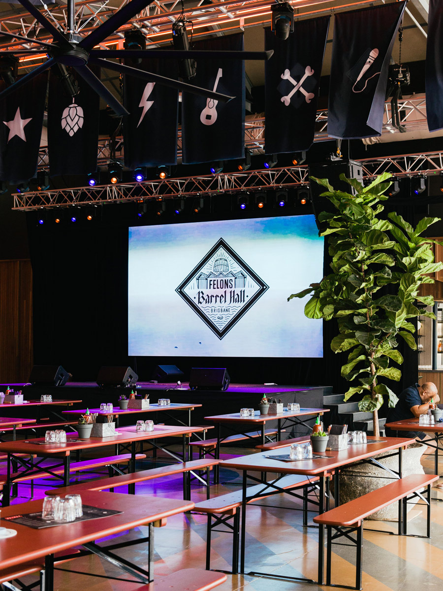 With unrivalled views of the Story Bridge, Brisbane River and the city skyline, the Brew Deck terrace at Felons Barrel Hall offers a unique & private open-air experience. Minimum catering spend applies.